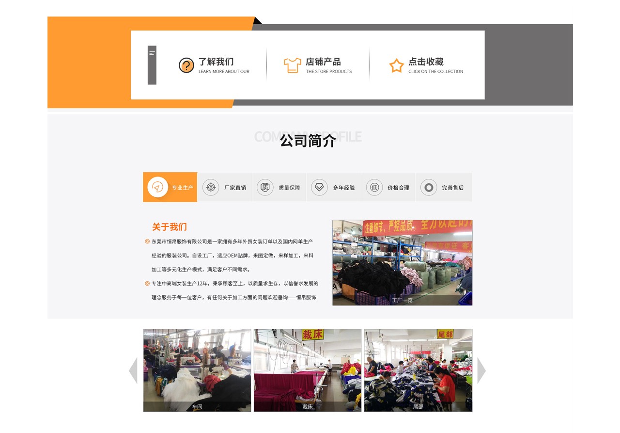 東莞市恒帛服飾有限公司是一家擁有12年專業(yè)生產(chǎn)加工各式女裝的公司,有多年的外貿(mào)女裝和內(nèi)單 網(wǎng)單的生產(chǎn)加工經(jīng)驗(yàn)。擅長(zhǎng)各種針織T恤 衛(wèi)衣以及雪紡 蕾絲等中薄料的生產(chǎn)。適應(yīng)OEM貼牌加工 來(lái)圖定制 來(lái)料加工等多元化生產(chǎn)模式,以滿足客戶不同需求!