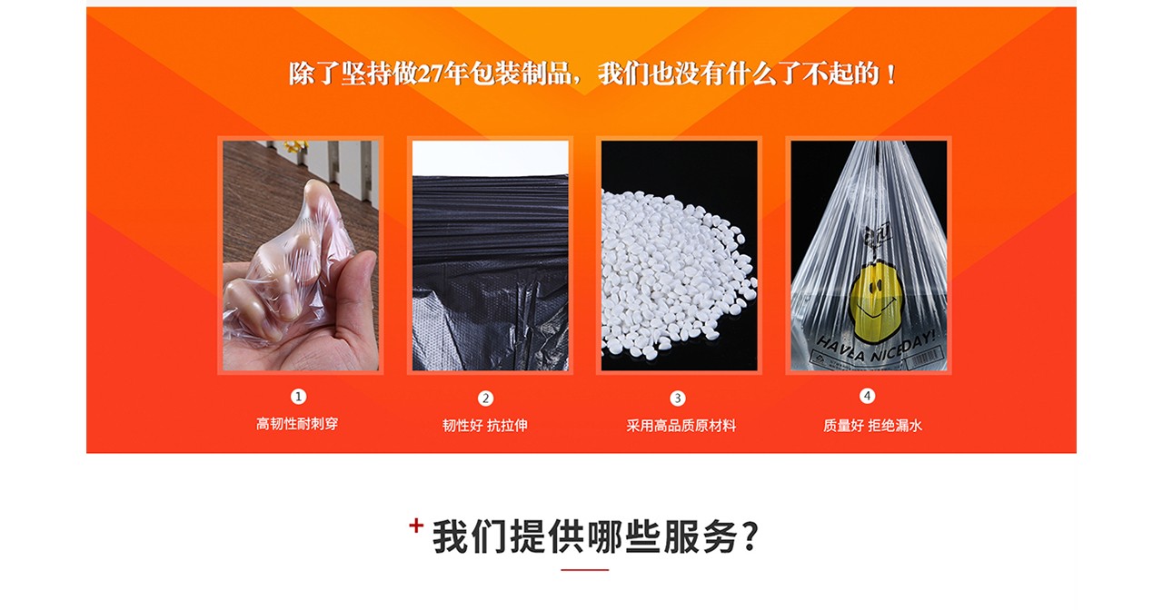 服務內(nèi)容:主營:背心袋; 吊袋; 快遞袋; 垃圾袋; 奶茶袋; 手挽袋; 洗衣袋; 醫(yī)療垃圾袋; 平口袋; 筷子袋