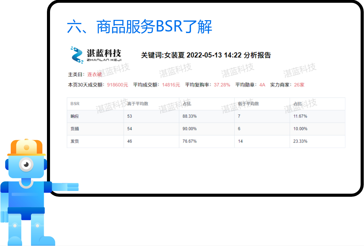 縱覽同行店鋪響應(yīng)、貨描、發(fā)貨等BSR數(shù)據(jù);