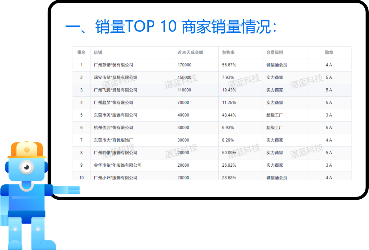 一鍵監(jiān)控同行TOP10店鋪,實(shí)時(shí)跟蹤近30天成交額、復(fù)購率、會員級別、勛章等核心數(shù)據(jù);